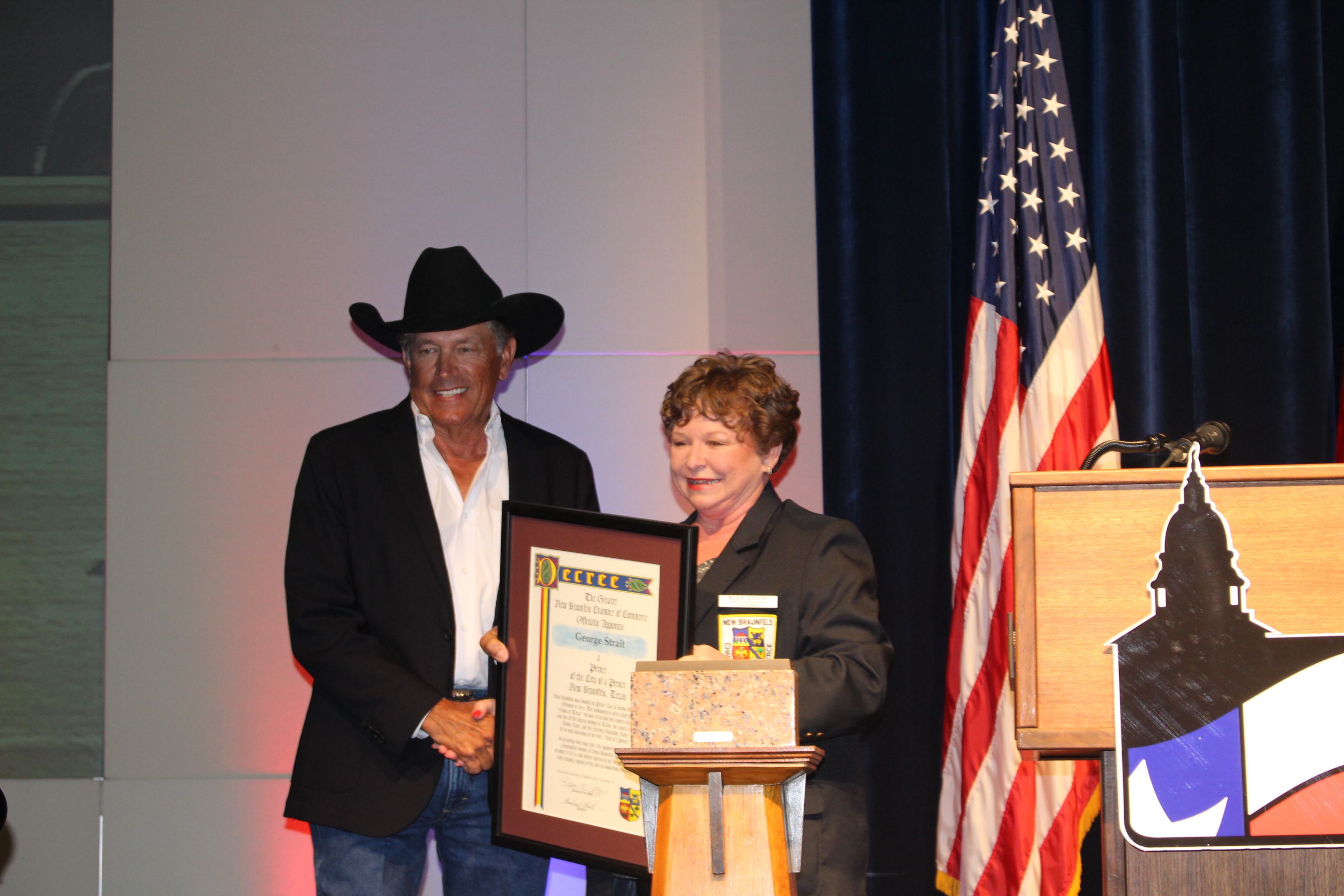 George Strait accepts the Texan of the Year Award in 2018 for his fundraising efforts for Hurricane Harvey relief.